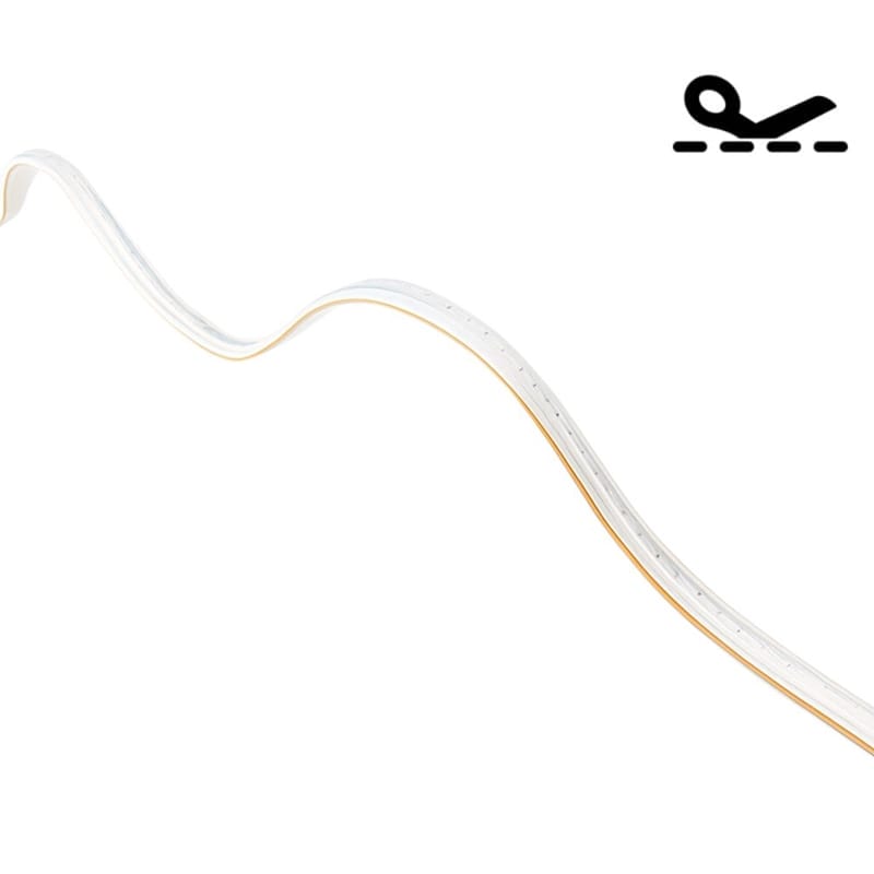 This LED strip is fully flexible and freely adjustable, making it particularly suitable for creative or tight installations where conventional strips simply won’t suffice. Because the light is emitted sideways instead of upwards, it’s ideal for rounded stair edges, curved furniture, contour lighting along letters or logos, and installation situations with limited height.