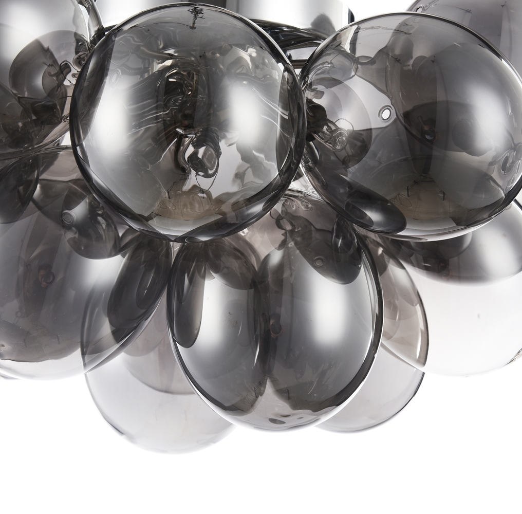 Metal fittings in nickel color. Dome lamps of transparent glass in two colors: smoky and cognac. Light source — lamps with G9 base.