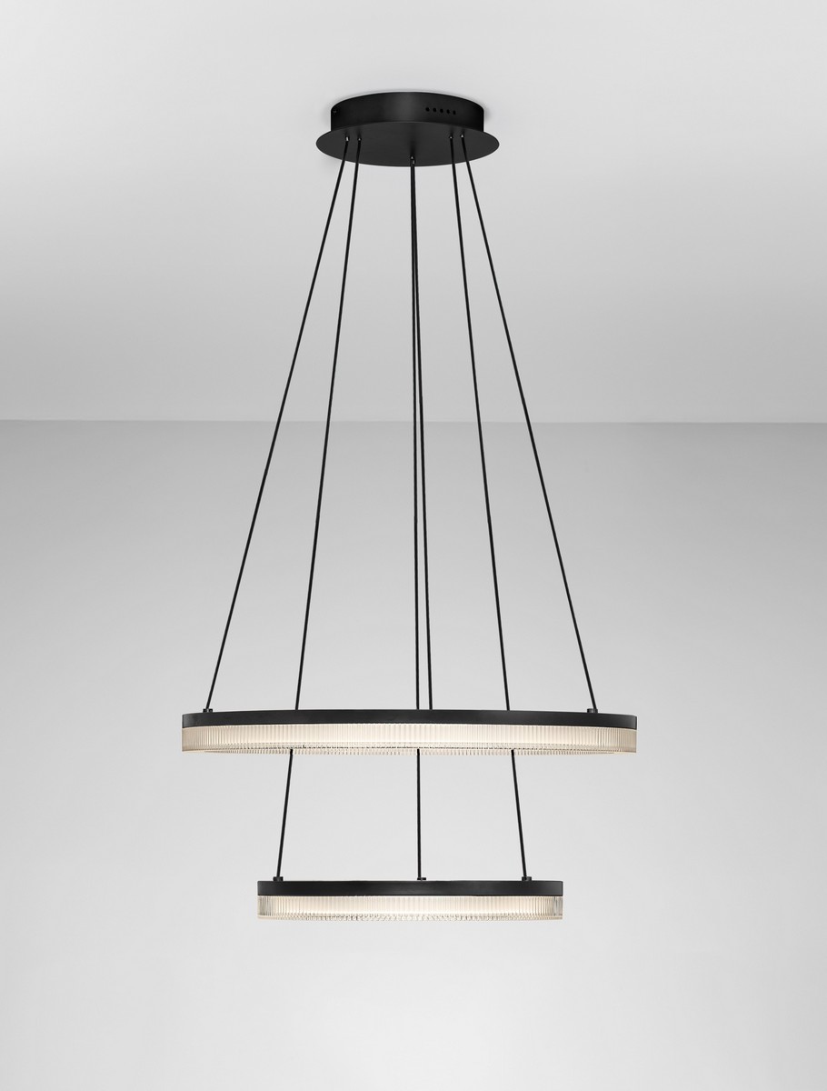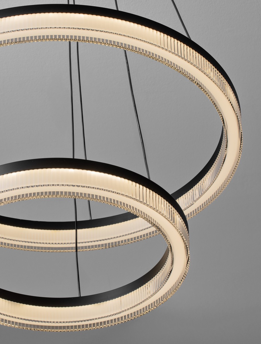 The Nova Luce LONELA pendant lamp is an elegant, modern ceiling light consisting of two circular LED rings. Its minimalist design combined with a black metal finish makes it a perfect fit for modern and loft-style interiors. The two-level design provides even illumination, creating a striking ceiling accent. Adjustable suspension allows you to adjust the lamp’s height to suit your individual needs. Perfect for living rooms, dining rooms, offices, and hotels.