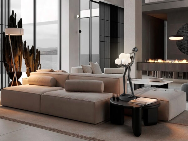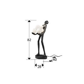 Figure holding light balls is made of fiberglass and polyester resin, matt black finish, spherical acrylic glass shades in matt opal finish. 5,2kg