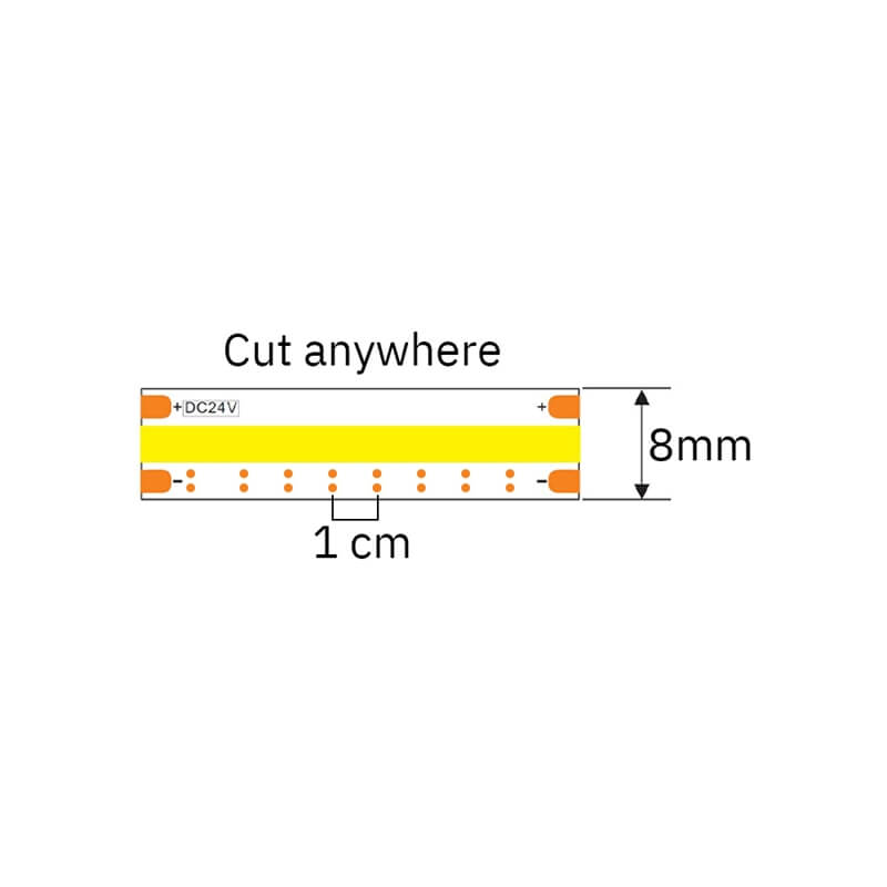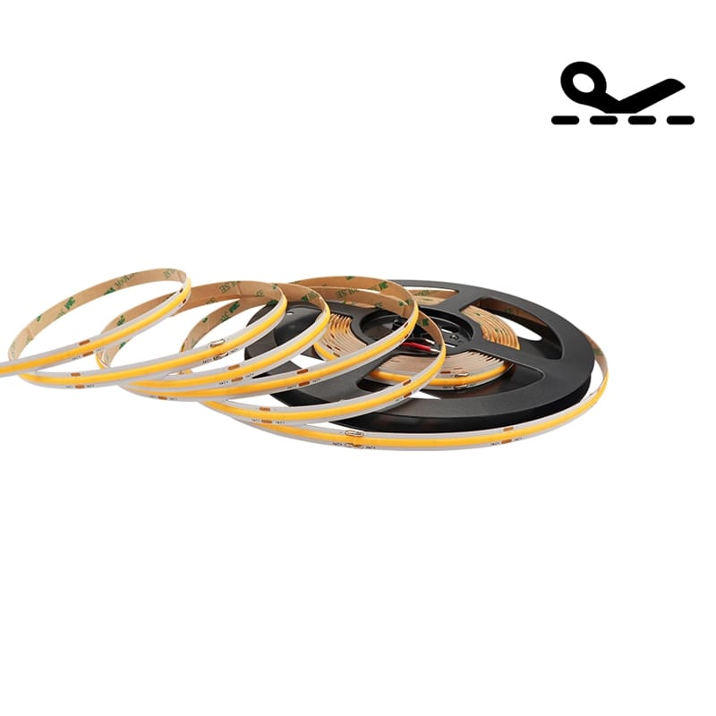 With this COB LED strip, in contrast to a traditional LED strip, there are no visible LED interruptions. This makes it possible to use the COB strip in aluminium profiles with a clear cover.
