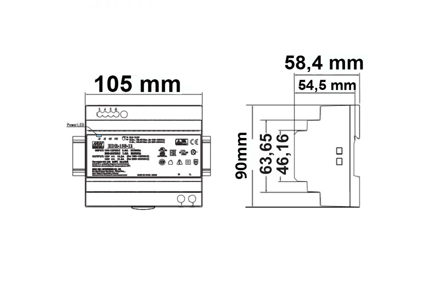 LED Top Hat Rail-transformer MW HDR-150-24, 21.6~29V DC, 0-150W
