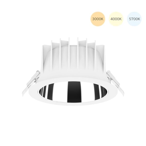 This modern downlight with mirror reflector minimizes glare and offers adjustable light color and power. Ideal for locations where bright, comfortable lighting is required.
