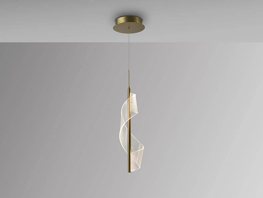 Lamp made of metal and aluminium, matt gold finish. Microprinted methacrylate molded diffusers. Adjustable height. LED 10.5W 455 lm 3.000K.
