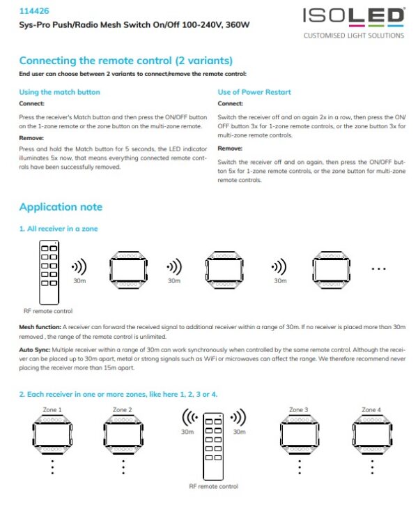 | Special features | Memorizes up to 10 Sys-Pro remote controls, mesh transceiver – transmits the signal to the next receiver max. 30 meters. Only install and connect when voltage-free! |