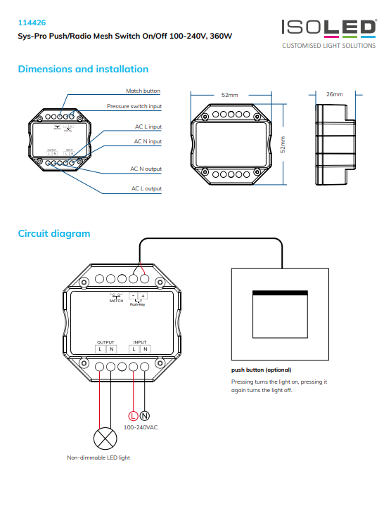 | Product description | Sys-Pro Push/Radio Mesh Switch On/Off 100-240V, 360W |