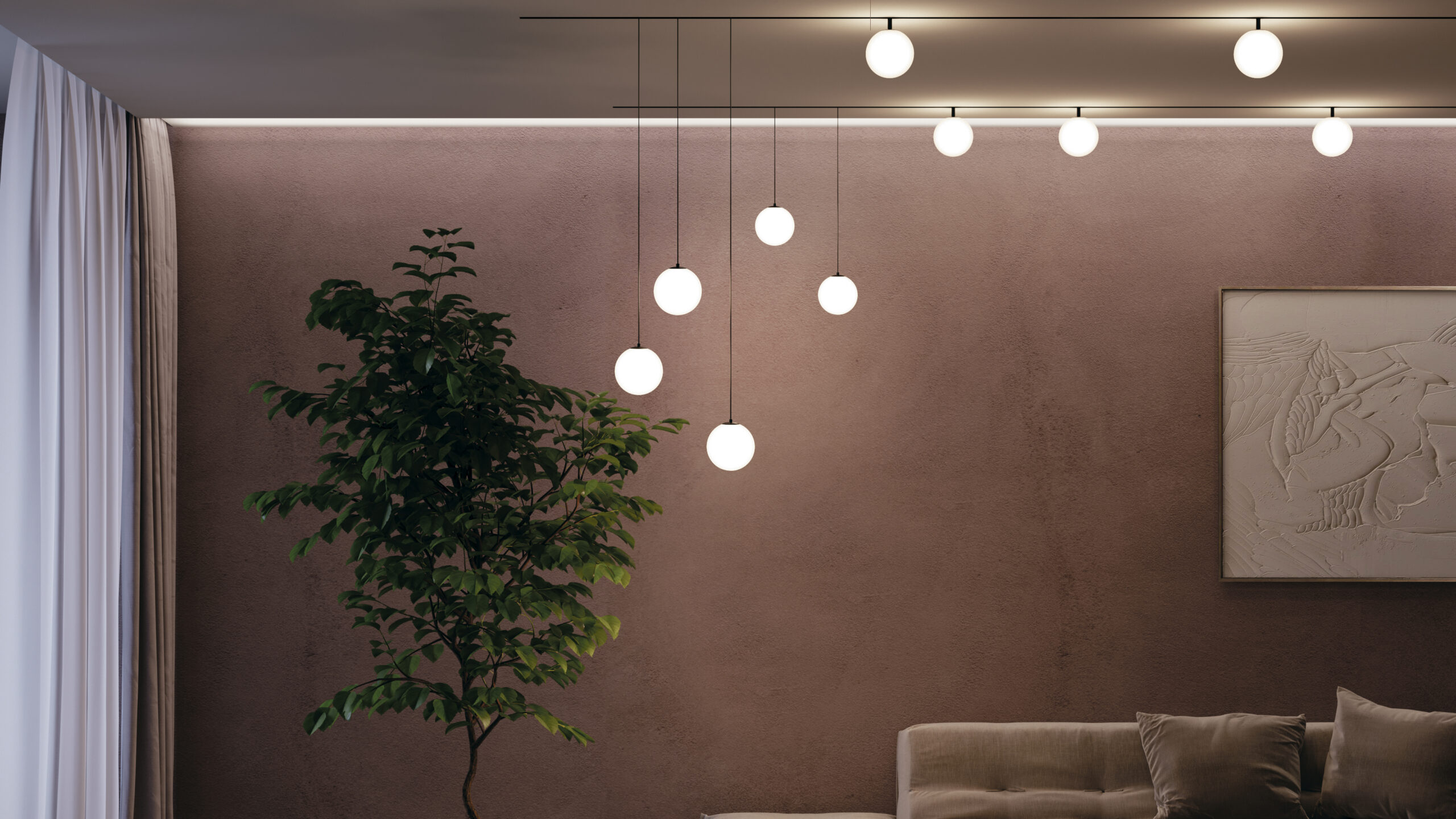 The Luna track luminaire is an elegant solution shaped like a perfect sphere. It is designed for general residential lighting.