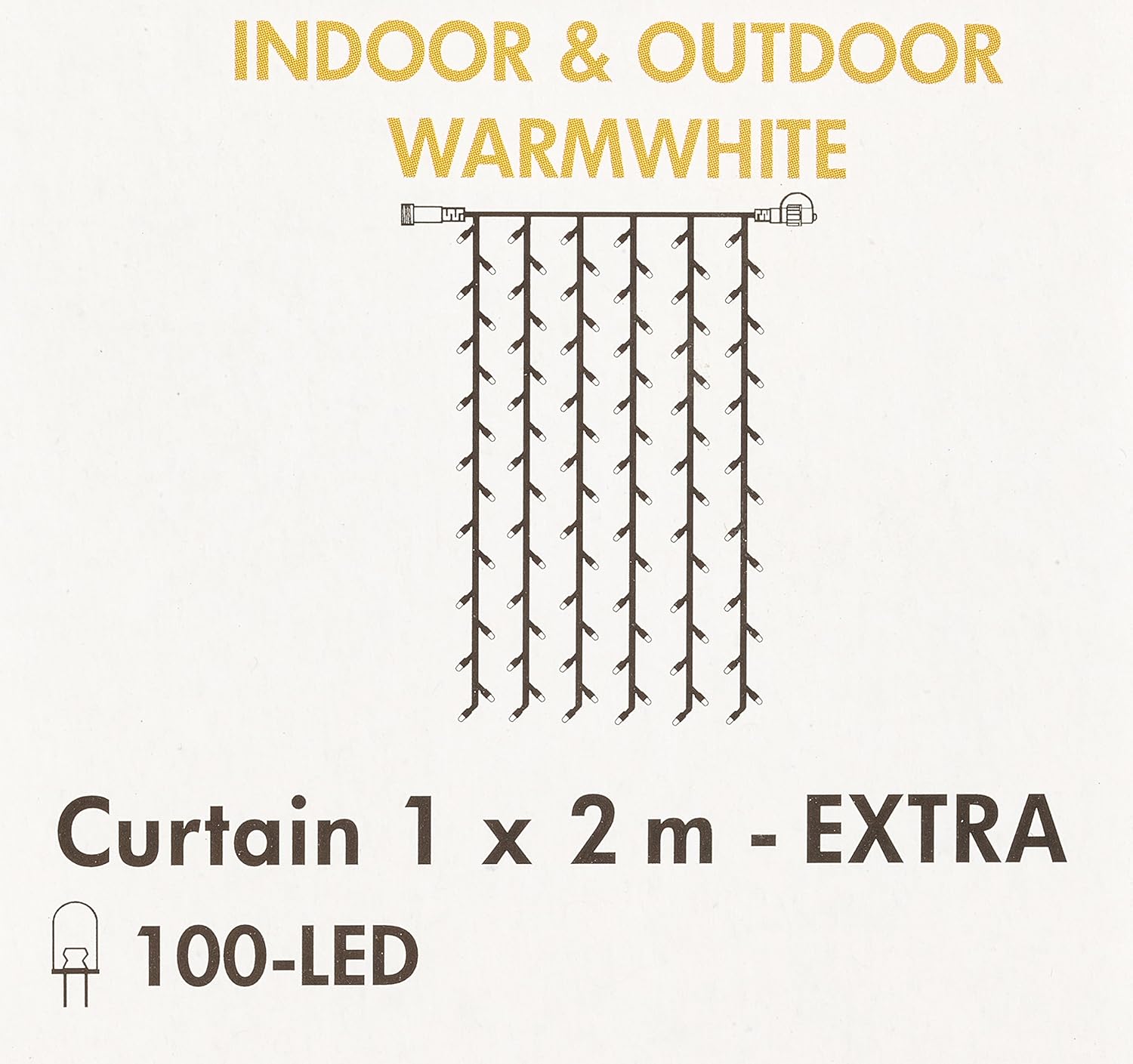 Jätkatav 1m laiune, 2m pikkune valguskardin valge, sooja valgusega.