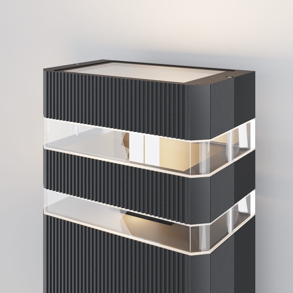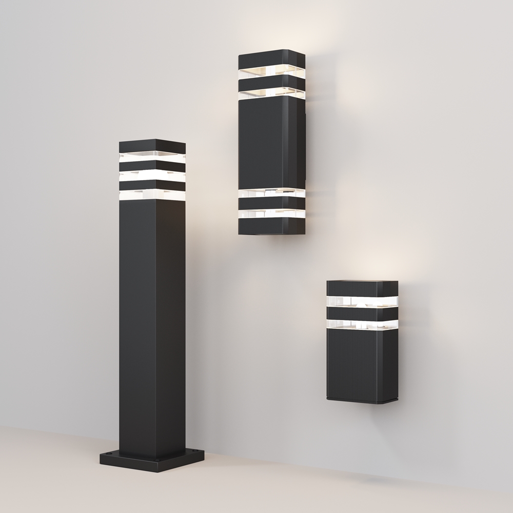Body — aluminum, color — black. Corrugated texture. Transparent plastic diffusers. Models are equipped with silicone gaskets. High level IP54. Resistant to corrosion and temperature differences.