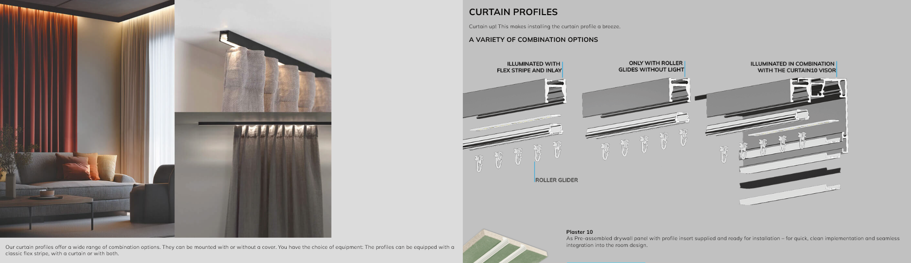 Curtain rail LED profile, Dry Wall LED Profiles, Installation Supplies and morePlaster10 One moisture-resistant plasterboard panel 12.5mm, with profile insert and cover, 200cm