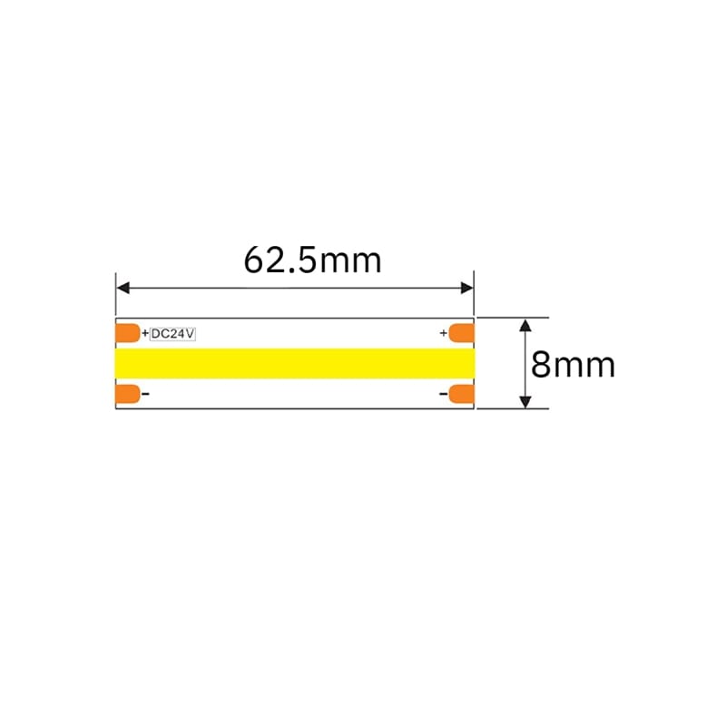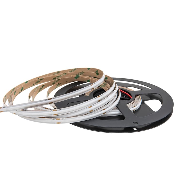 With a COB LED strip, there are virtually no visible LED interruptions. This makes the strip suitable for use in shallow aluminum profiles. Includes 3M double-sided tape on the back for easy installation.