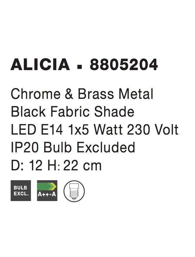 Chrome & Brass Metal Black Fabric Shade LED E14 1×5 Watt 230 Volt IP20 Bulb Excluded D: 12 H: 22 cm