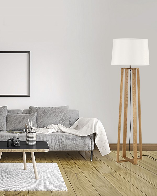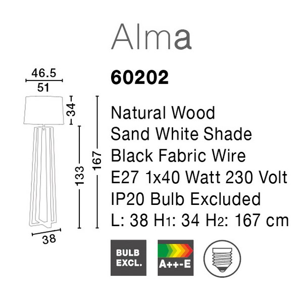 Natural Wood Sand White Shade Black Fabric Wire LED E27 . Bulb Excluded L: 38 H1:34 H2:167 cm