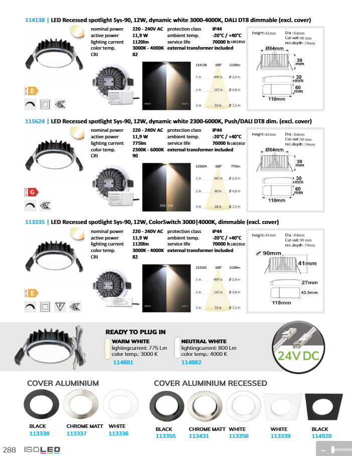 CCT-CS-Colorselect, DALI LED lighting, Recessed LED downlights, LED SYS-90LED recessed spotlight Sys-90 12W Tunable White 3000K-4000K,Push or DALI DT8 dimmable (excl. cover)
