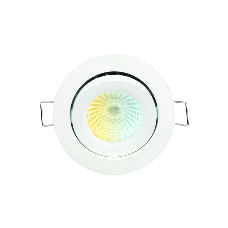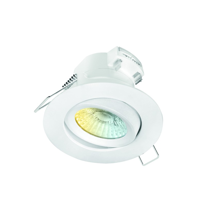Colour Switchable IP44 Adjustable LED Downlight (120lm/W) with integrated Triac Dimmable LED driver. Coverable