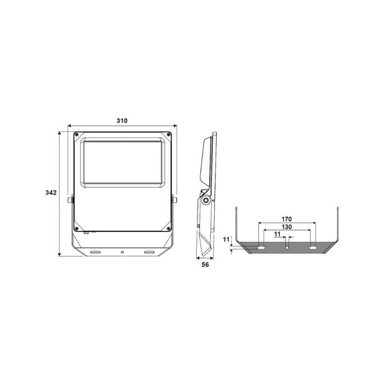 Technical data: Floodlight | 25W/37.5W/50W | 100×60° | 3-CCT | light sensor