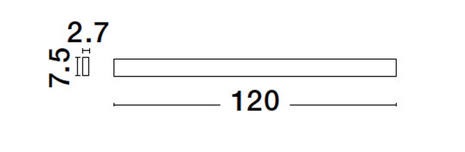 Dimensions: L: 120 W: 2.7 H: 7.5 cm
