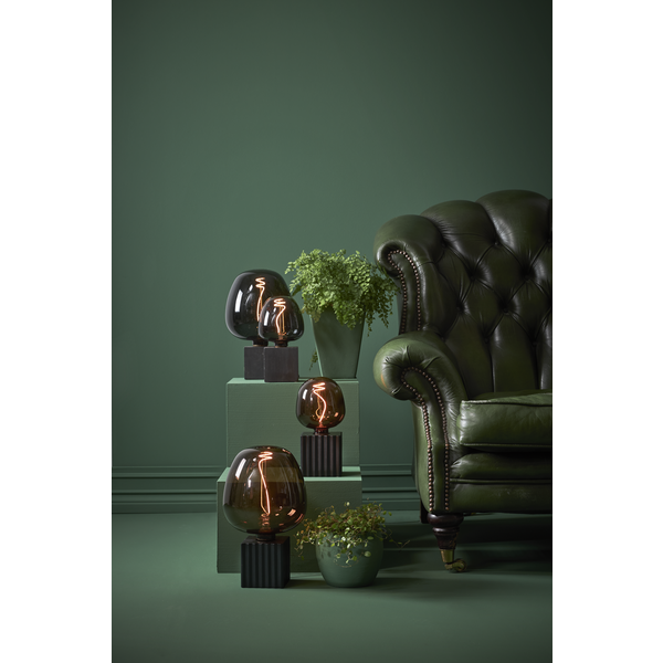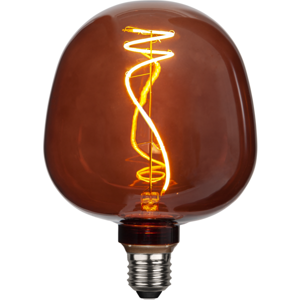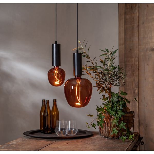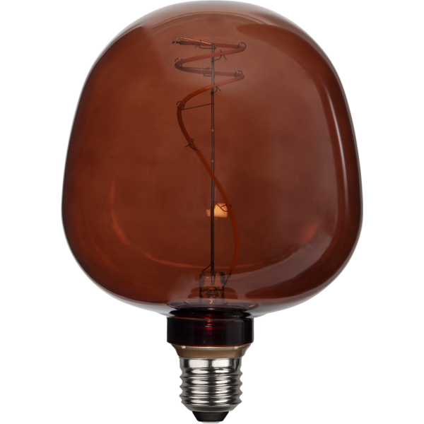 Big size filament LED-lamp for decorational purpose. The glass has dark brown (cognac) colour that gives a warm and soft glow.