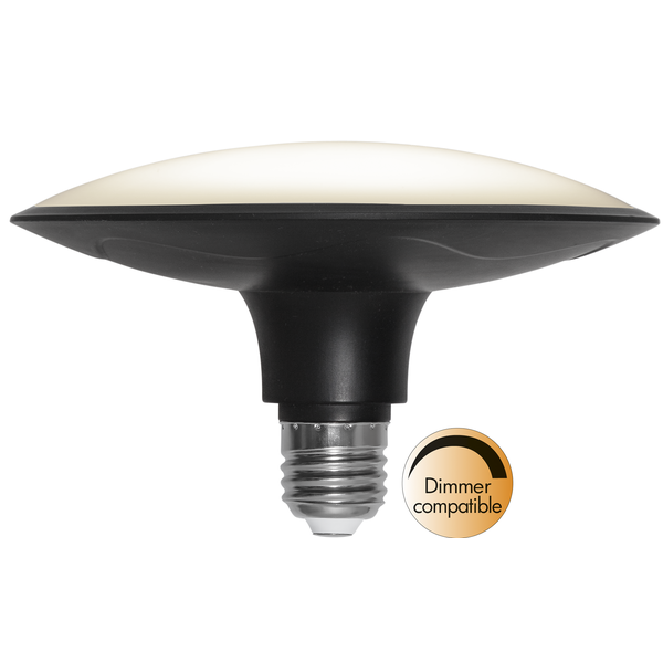 Black high lumen lamp with E27 cap. Together with it a cord set it will light up working spaces, kitchen areas and tables. It is dimmer compatible.