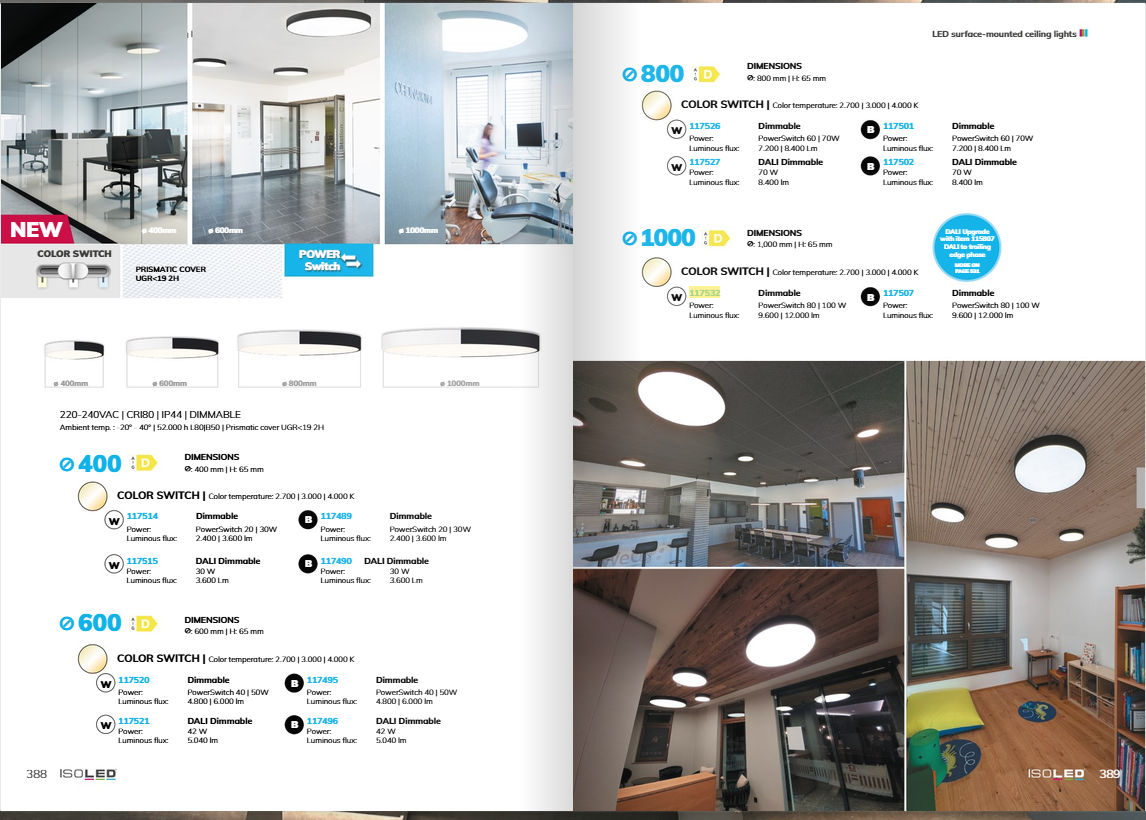Product description LED Ceiling light UGR<19 2H, white, 80W|100W, IP42, DN1000, ColorSwitch 2700|3000|4000K, Microprismatic, dimmable