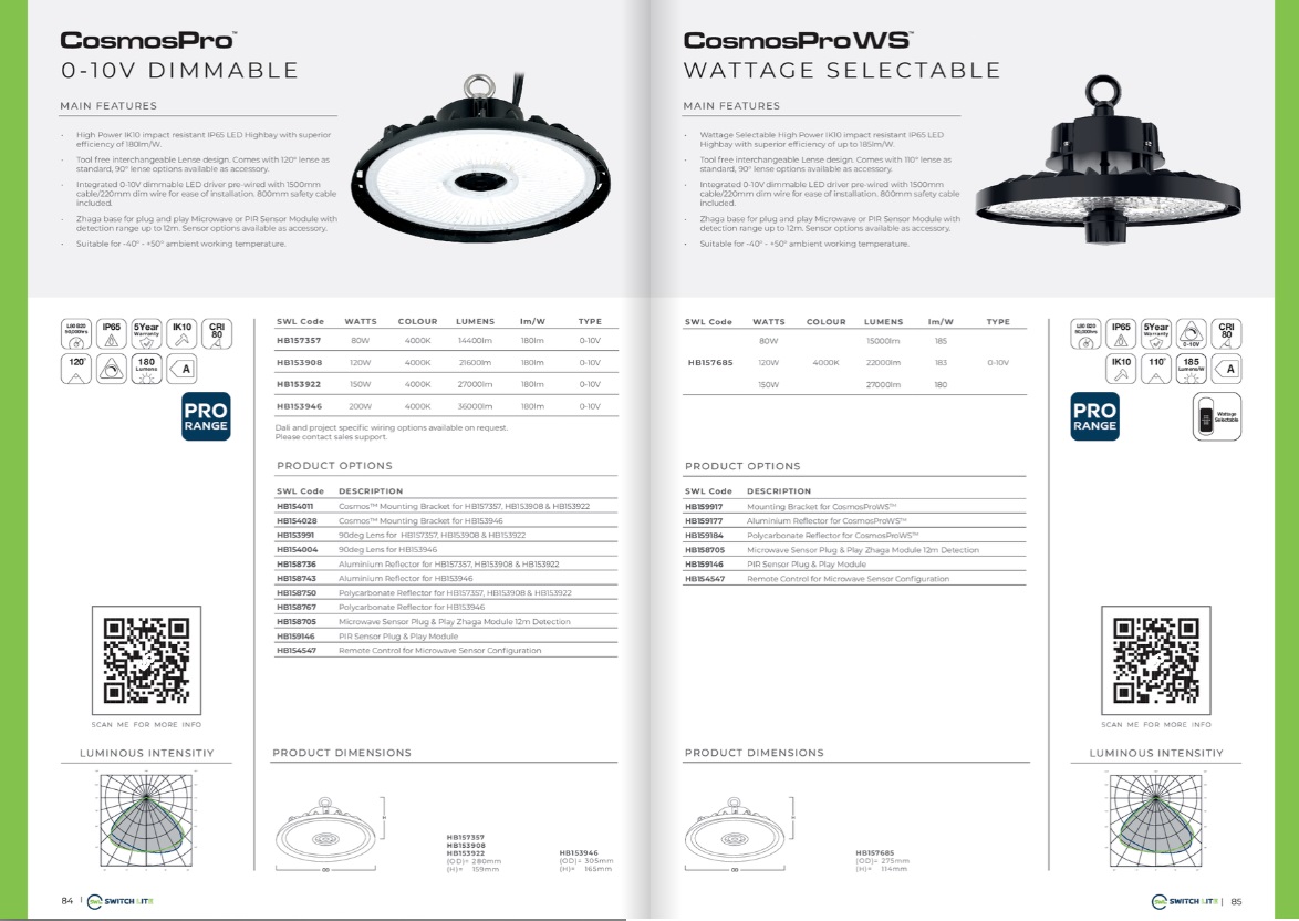 High Power IK10 impact resistant IP65 LED Highbay with superior efficiency of 180lm/W.