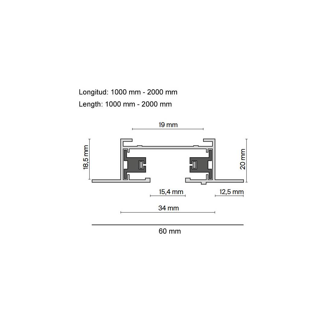 Recessed singlephase tracks. Designed for installation in surfaces made of plasterboard or other sheet materials. Has a shallow depth of installation, only 21 mm. It can also be installed in a prepared cavity 35 mm wide and 21 mm deep.
