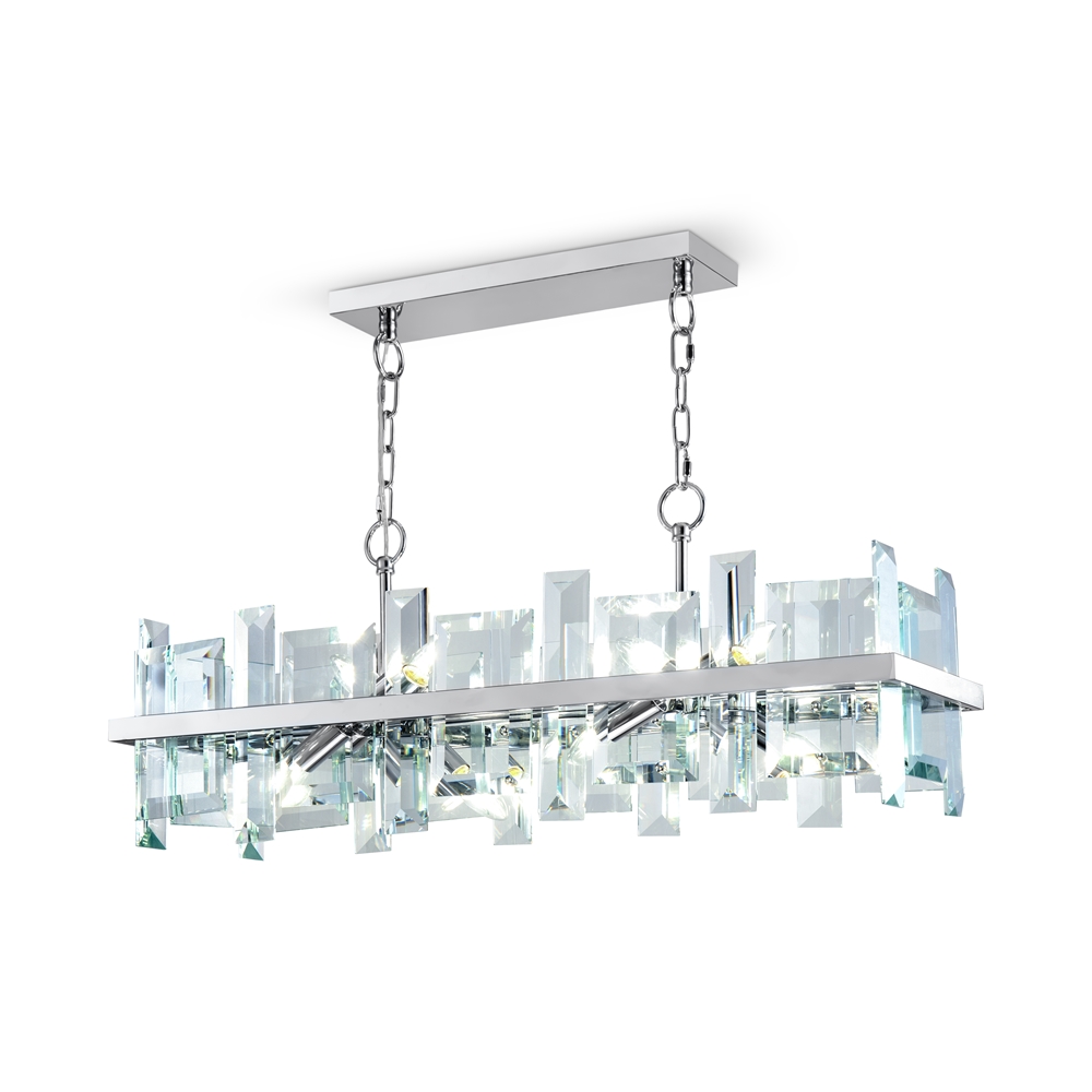Metal fittings, color — chrome. Dome lamp is made up of transparent optical glass plates. The metal frame of the dome lamp is colored to match the fittings. Height of pendant models is adjustable.