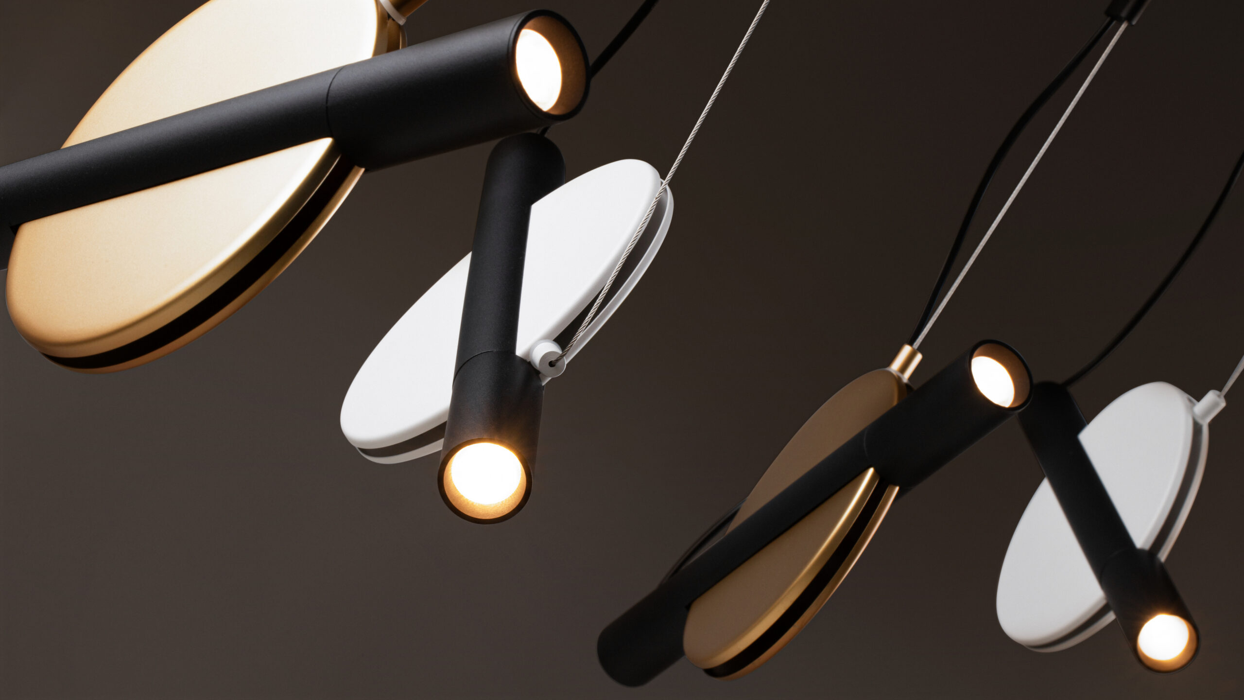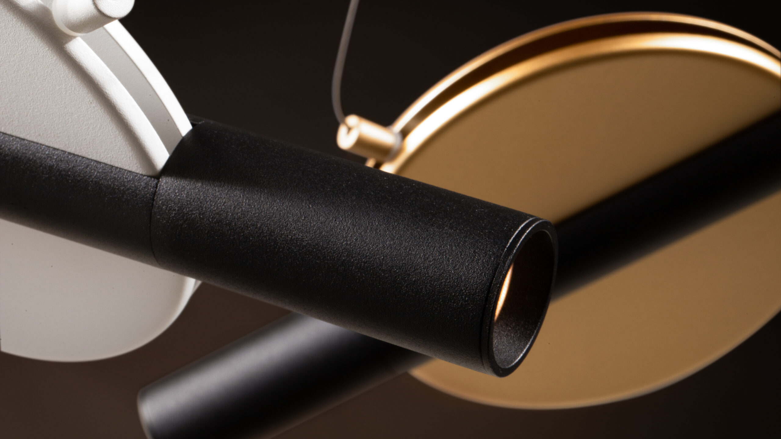 Exquisite color solutions (black with gold or black with white) emphasize the luminaires’ structure and shape. A contrast line splitting the rounded outline in two creates spectacular harmony.