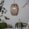 Oatcoloured 40cm high lamp shade made of synthetic rattan in PE material for outdoor use.